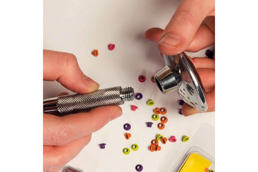 Kit indispensable pour la pose d'œillet facilement et sans bruit, tapis de perforation inclus.